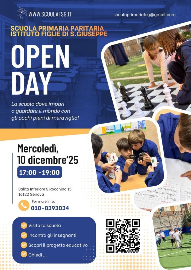 Open Day Scuola Primaria Postato il 2 dicembre 2025 di scuoladellinfanziafsg Per partecipare è necessario iscriversi